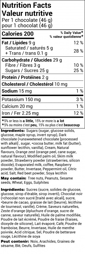 Our iconic Victoria Creams are rich and creamy with a naturally flavoured whip creme base center which is then covered in dark chocolate. These delightful gems take you back over 135 years to the earliest days of Charles Rogers, our founder and Canada's original chocolatier. True to his legacy, we still use his original recipe and only the finest ingredients.