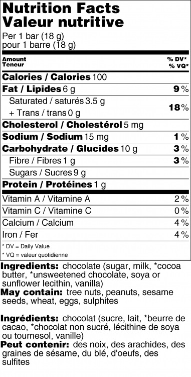 A solid 2" x 2" 33% milk chocolate mini bar imprinted with a shamrock.