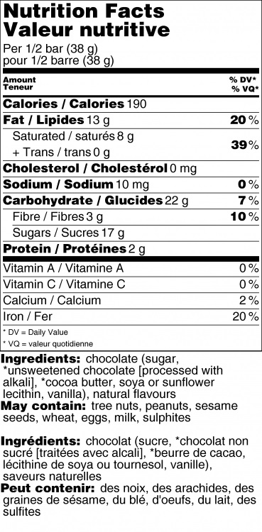 A fine tradition, with a twist. Peppermint is blended into our gourmet 54% cocoa dark chocolate bar.