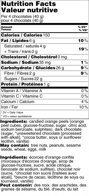 Aromatic slices of candied orange peel coated in decadent dark chocolate. The resealable bag lets you snack on some now, and keep some for later ... if you can resist!