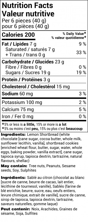 A zesty lemon treat to awaken the senses! Bite-sized pieces of shortbread covered in zesty, lemon white chocolate. Yum!