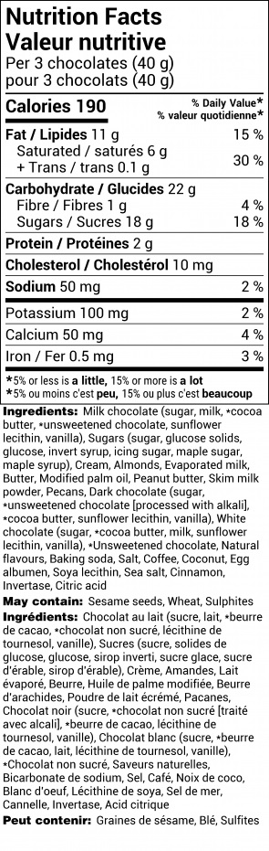 This milk chocolate collection is the perfect assortment of Rogers' signature chocolates including a variety of chocolate caramels, mini creams, pecan chews, truffles, almond brittles, a nougat mini and Empress Squares. Assortment may not be exactly as shown.